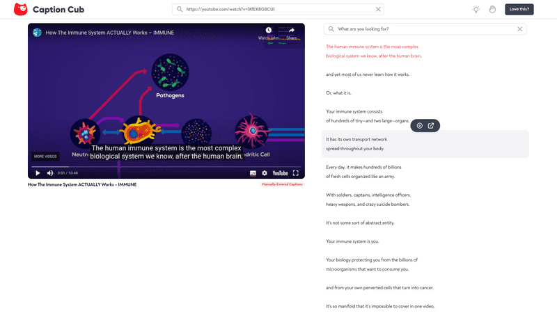 "CaptionCub helps people find the exact moment they are looking for in YouTube videos."